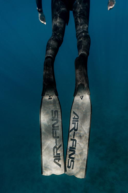 Apnée et chasse sous-marine. Ces disciplines exigent à la fois performance, maîtrise et respect de l’environnement. Qu’il s’agisse de compétition (aller plus vite, plus loin, avec toujours plus d’efficacité) ou de sorties freediving, le matériel joue un rôle central dans le confort, la sécurité et le plaisir sous l’eau. Air-Fins est né de cette recherche permanente : palmer plus loin avec moins d’effort, conserver une propulsion fluide et efficace, et pouvoir, en un seul coup de palme, se déplacer pour observer la beauté et la richesse du monde sous-marin.